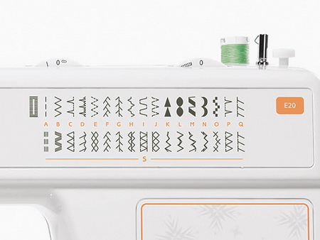 Увеличенный набор строчек по сравнению с моделью E10 дает вам гораздо больший простор для творчества, ведь здесь еще больше декоративных швов. Вы сможете не только шить, но и украшать изделия необычными деталями.